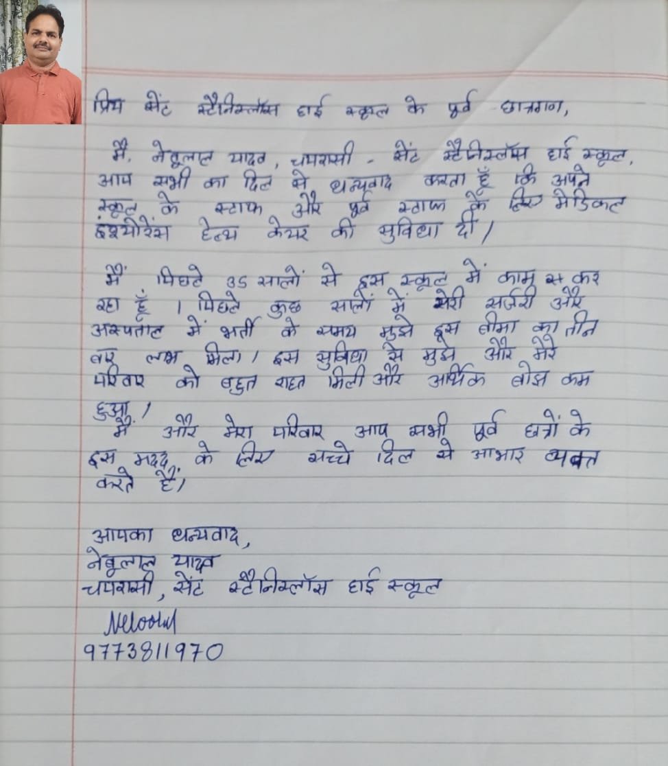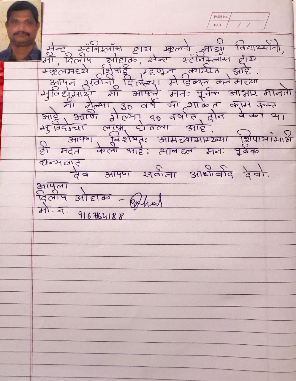 Heartfelt gratitude to my dear , generous students of St. Stanislaus High School for your kindness in donating towards the Medical Health Care Initiative for our beloved former teachers and staff.