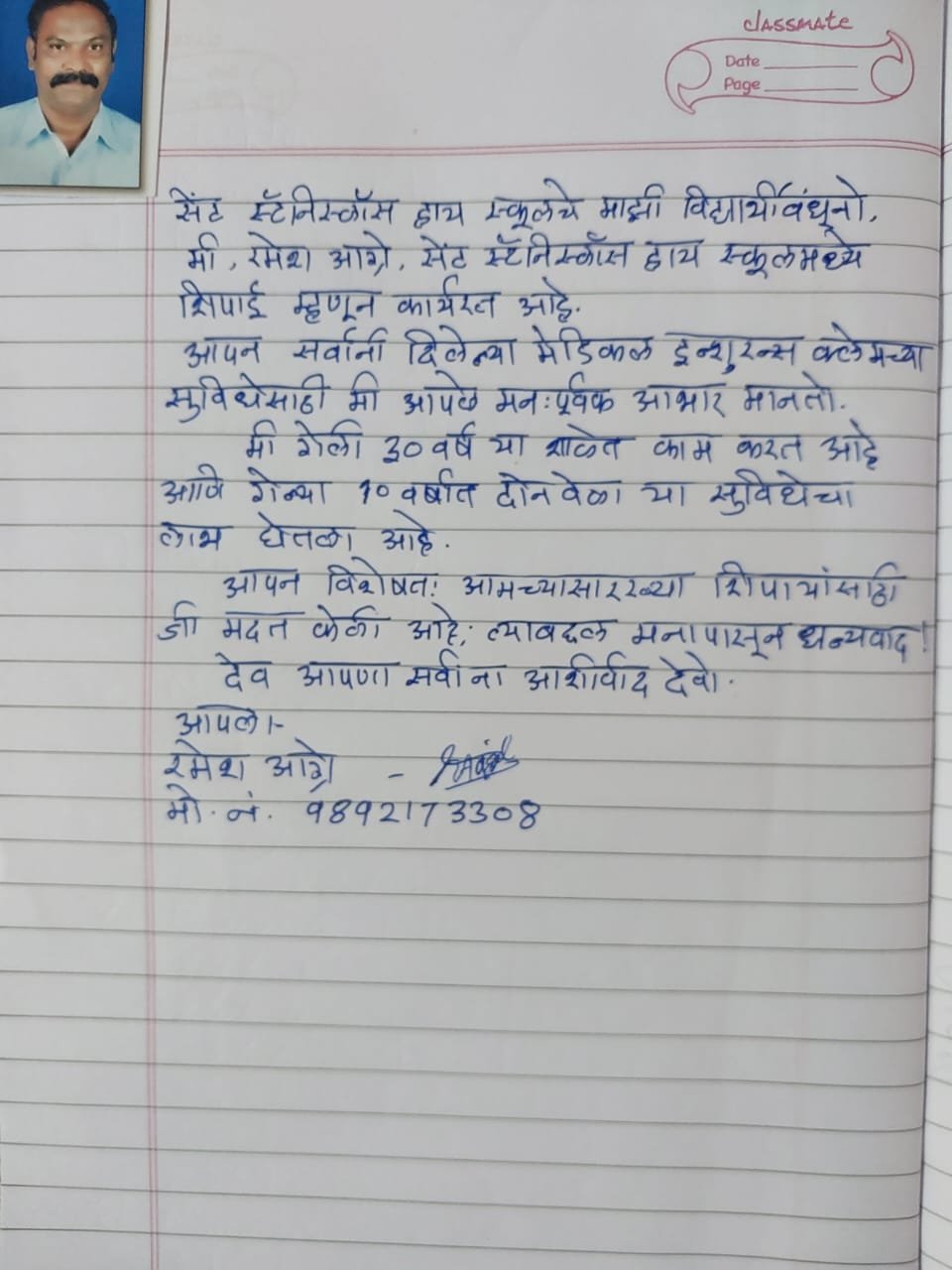 I am deeply grateful and thankful to all the Ex Students as well as Perviz Motafram and all the others who are helping and donating towards the Teachers Healthcare Medical Insurance. Although mom expired on 14th September last year and I had 2 other insurances one my corporate, the other a personal insurance which I had done , the hospital bill was very steep and all the three combined helped me pay at least 50 per cent of her hospitalisation bill at Criti Care hospital Juhu after her expiry.